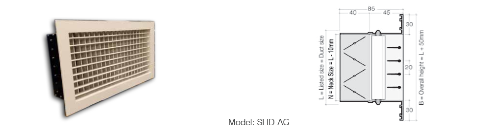 Blade Spacing: As standerd all single or double deflection blade are set on a pitch of 20 mm and blades are mannually adjusted. To ensure smooth operation and easy setting each blade is mounted in nylon bushes.